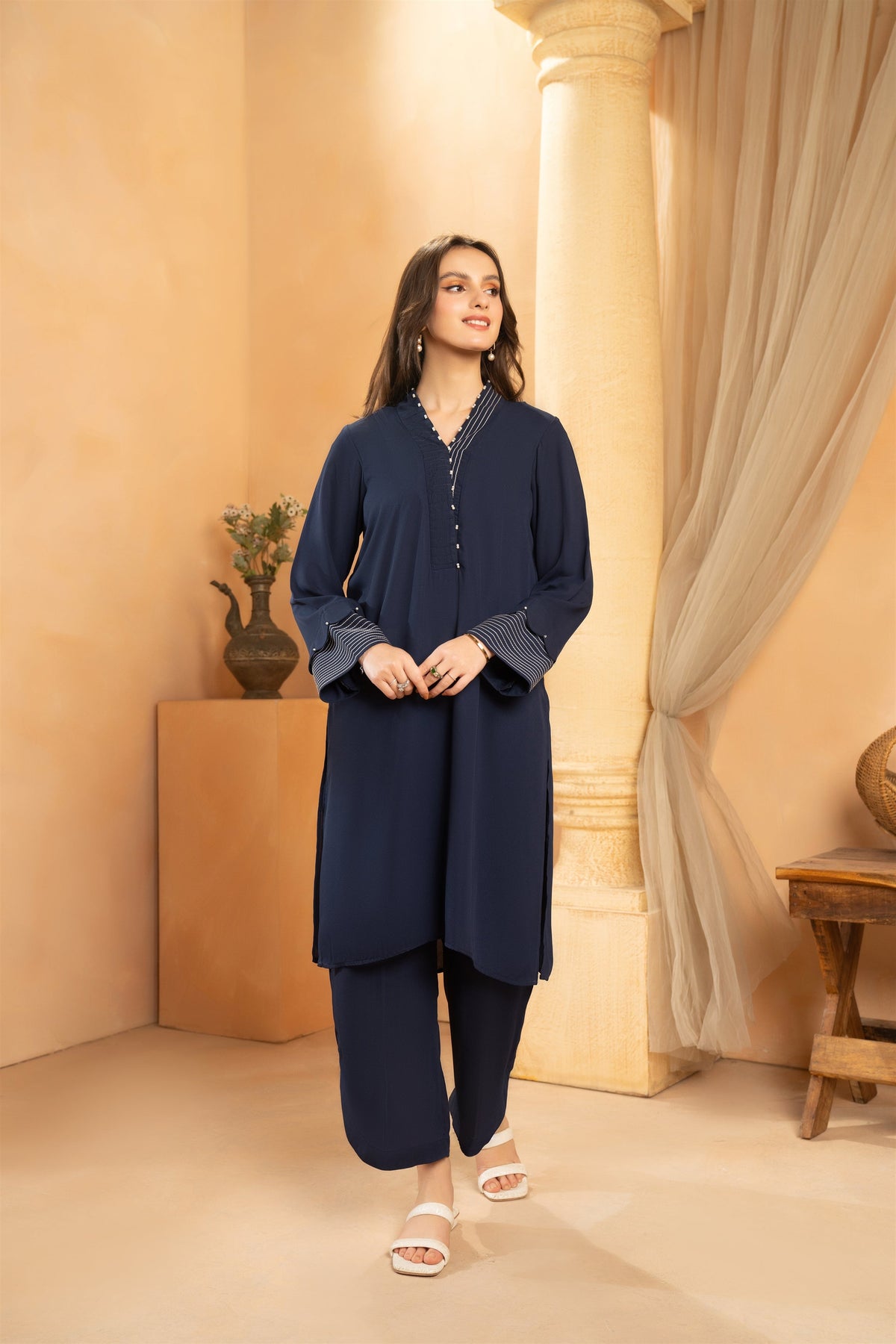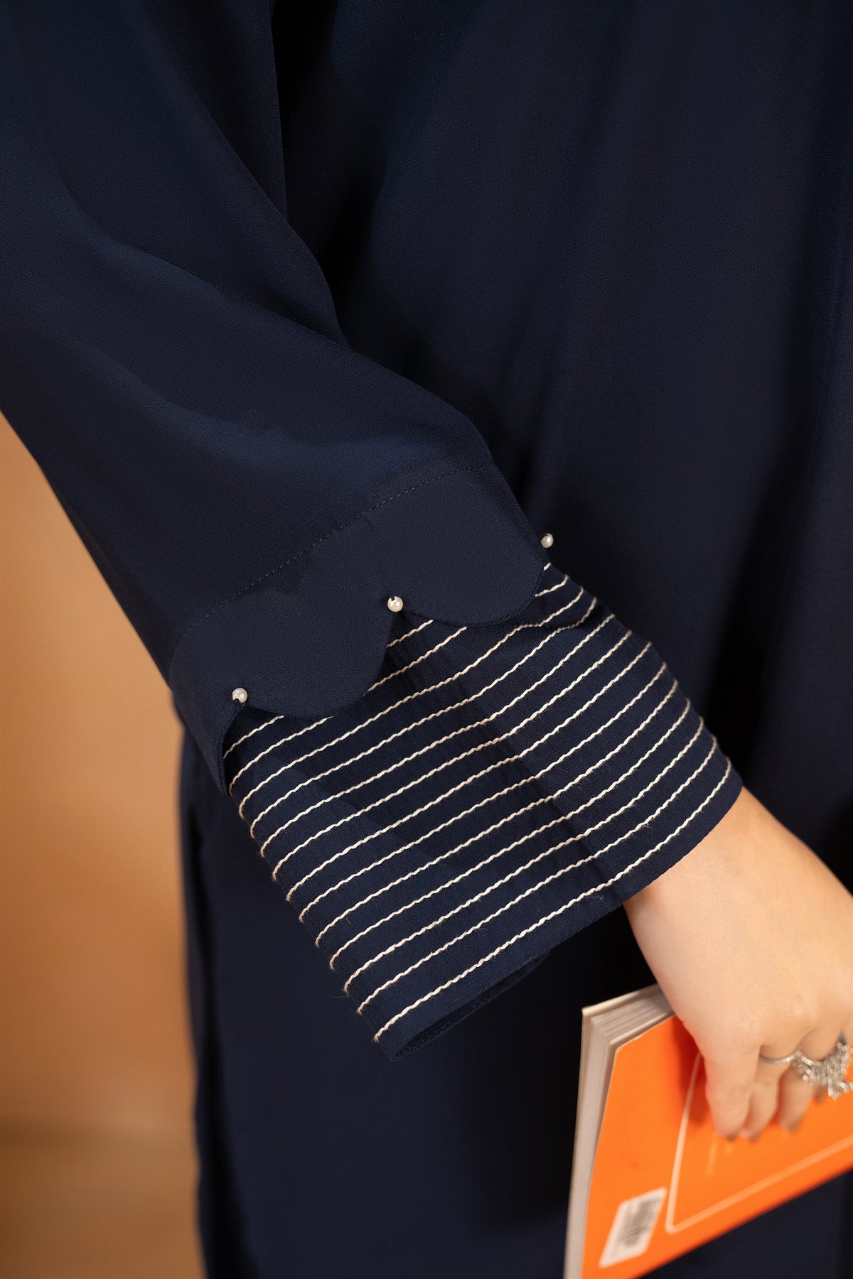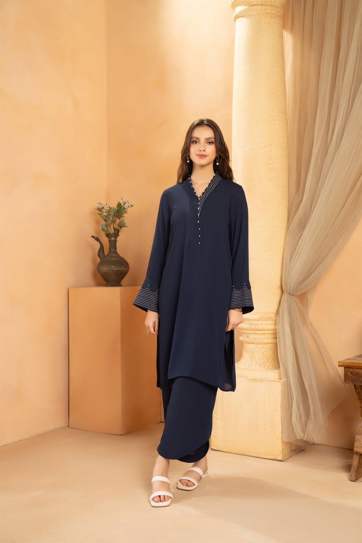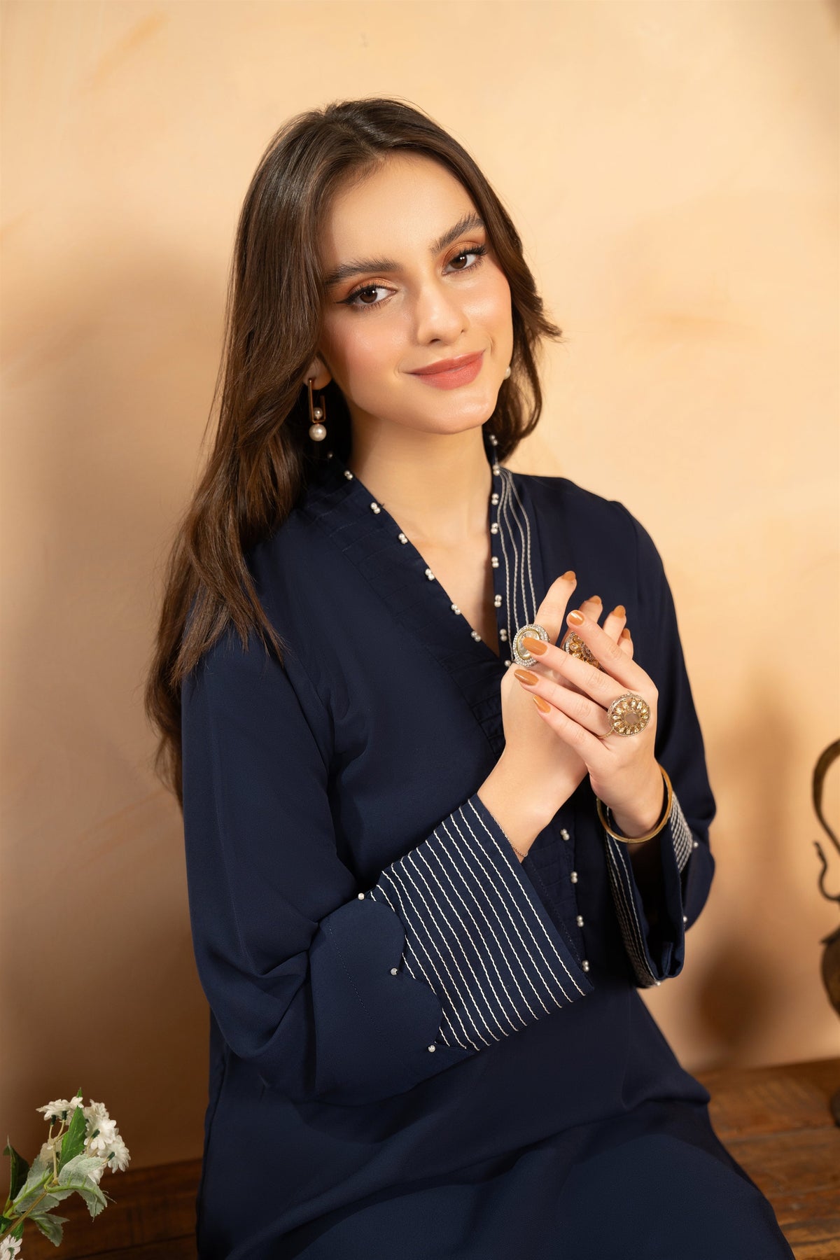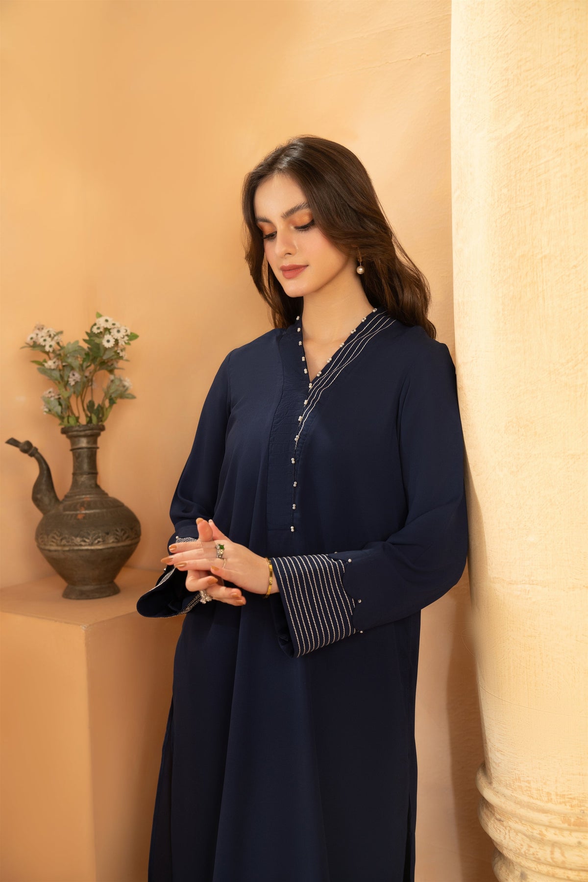 Pearls Bead use on neckline and sleeves a fascinating composition is layered over this statement ensembles illustrated in a gleaming blue shade.