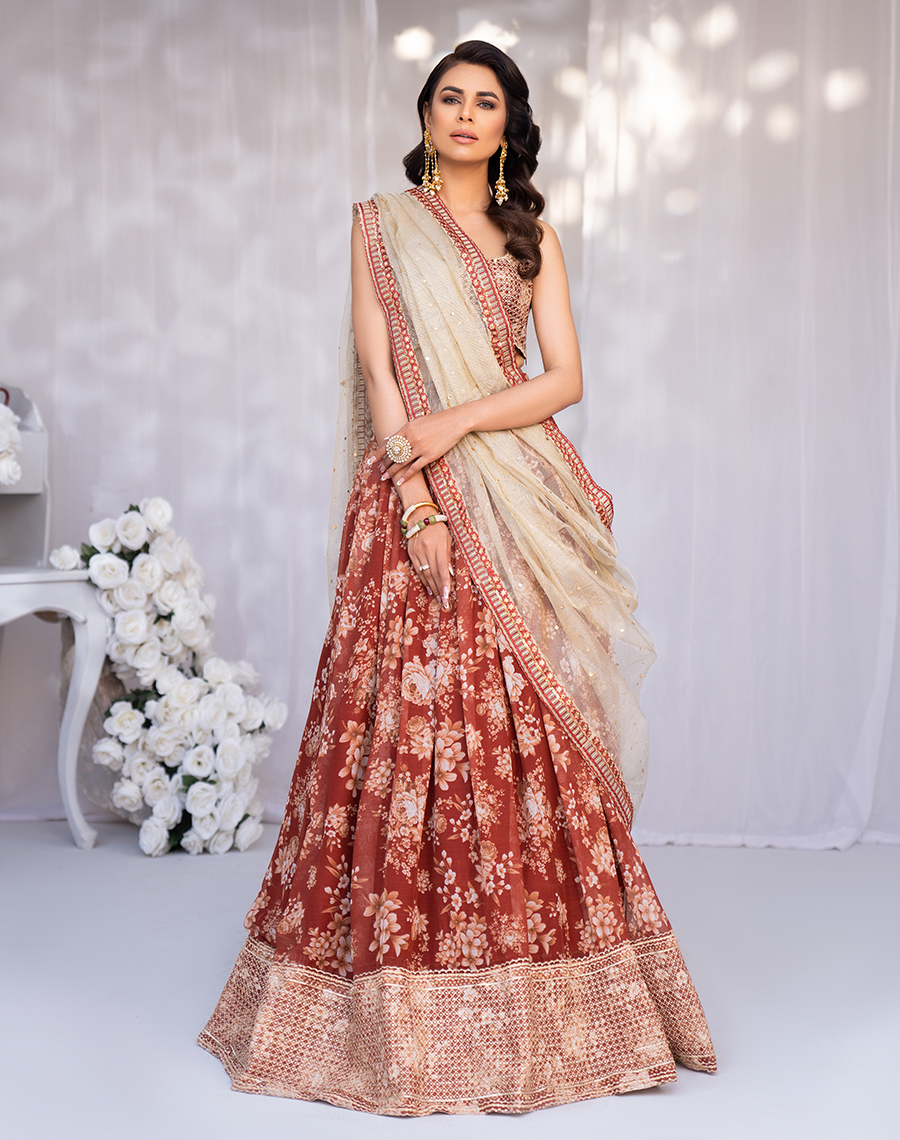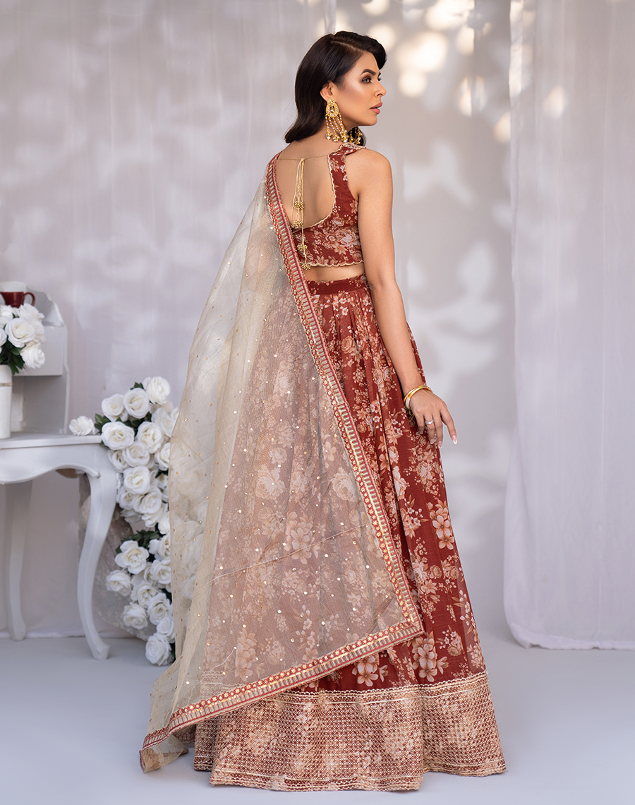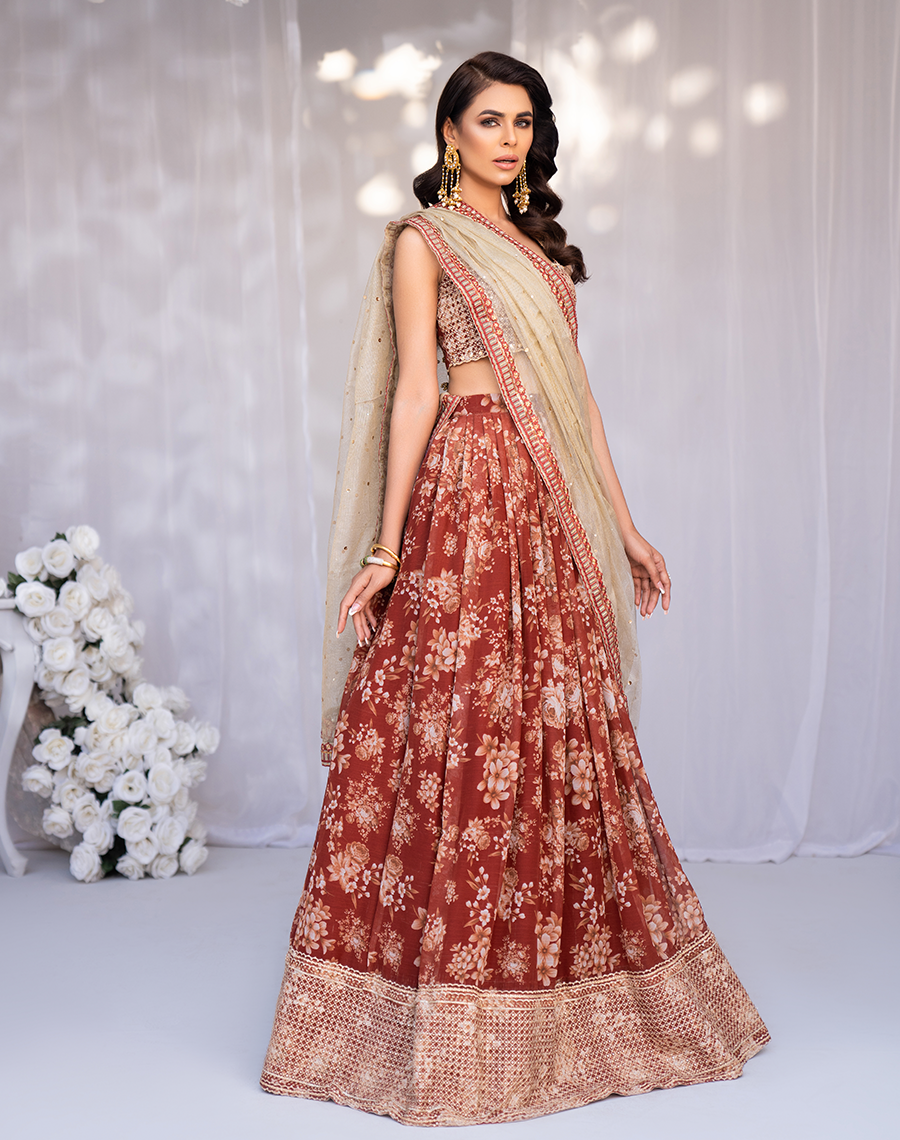 - Chiffon printed lehnga